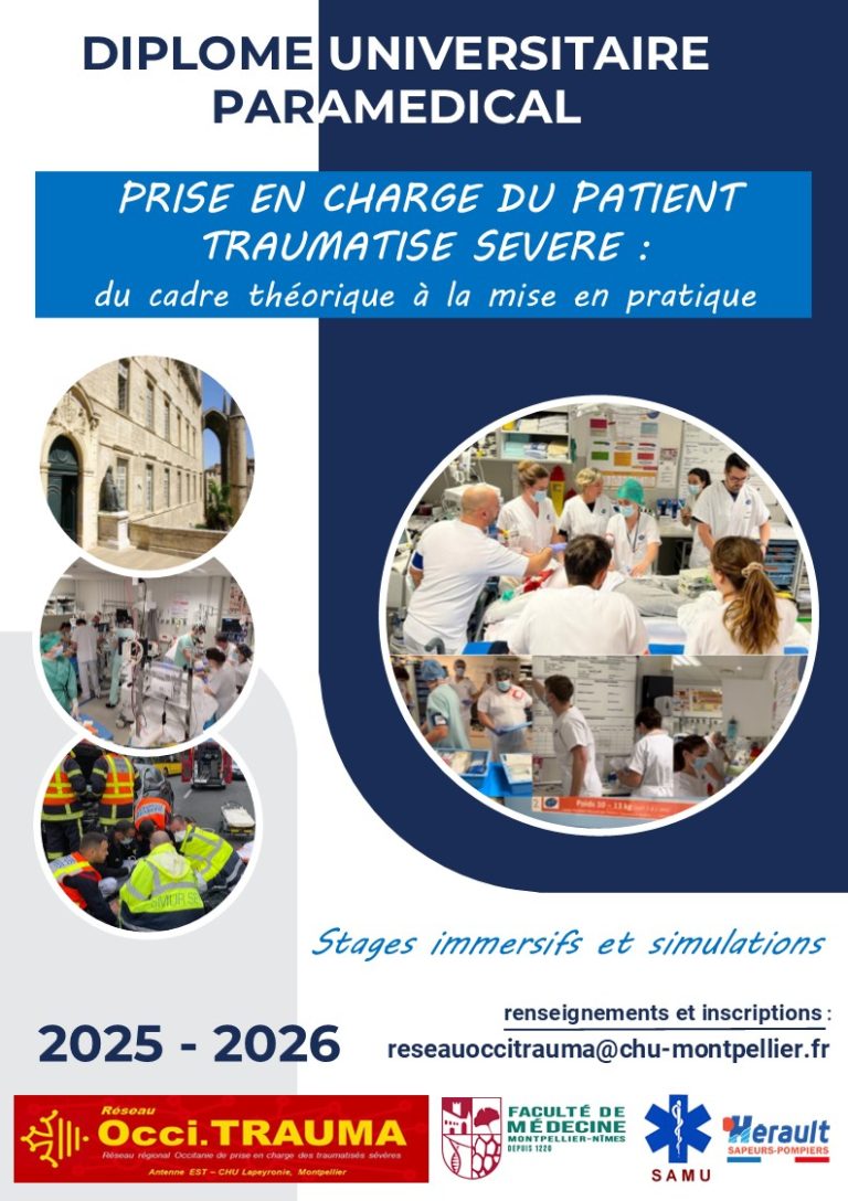 Nouveau ! Le réseau Occi.TRAUMA vous propose le Diplôme Universitaire paramédical de "Prise en charge du patient traumatisé sévère".